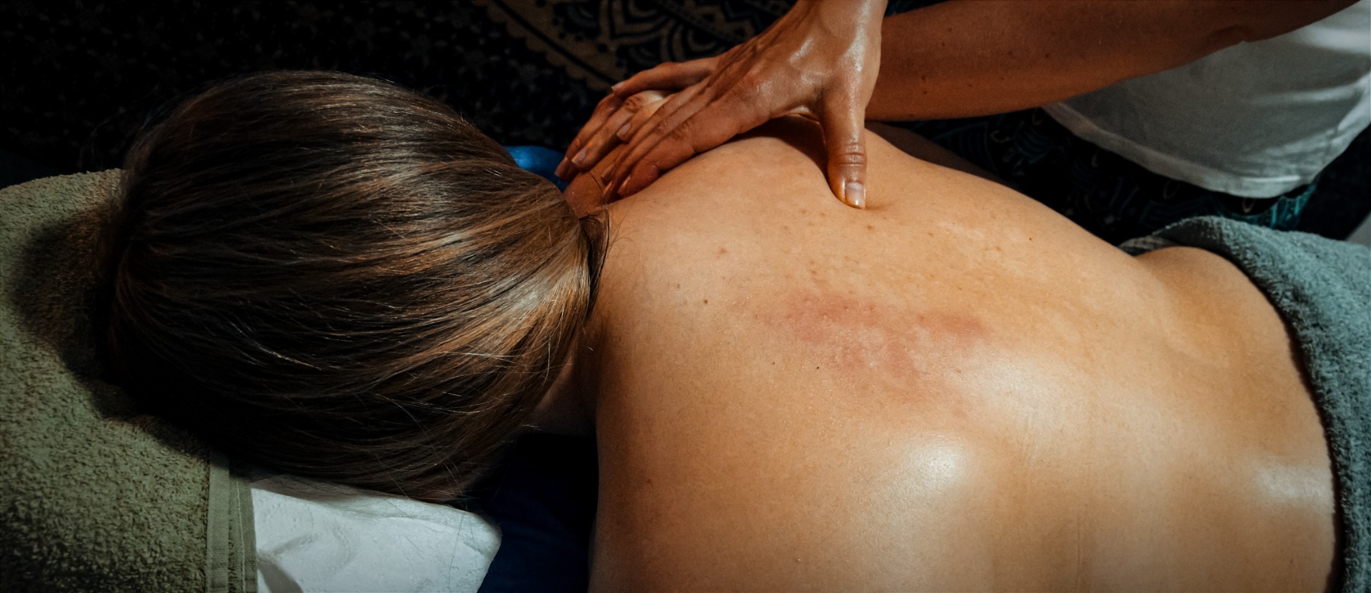 A masszázs előtt tanítok Neked egy nyugtató, feszültségoldó légzés technikát, ez körülbelül 10-15 percet vesz igénybe. A légzéssel már megkezdődik a nyugalmi állapot kialakítása, amit az aromás olaj illata is támogat.